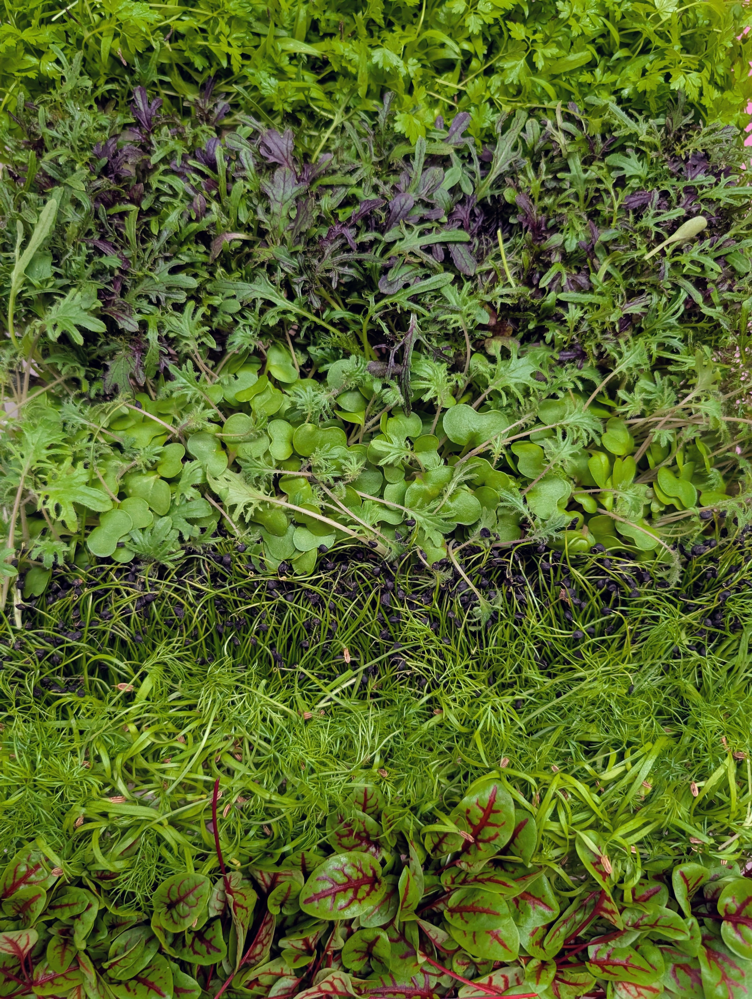a blended mix of our delicate leaves: amaranth, mizuna, chervil, marigold