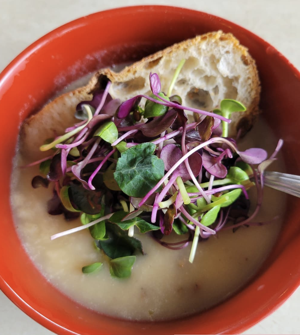 This blend of some of our heartier microgreens was developed in partnership with Chef C.J. Jacobson of Aba Restaurant. He wanted a mix that focused on juicy, crisp microgreens that could be added to cold dishes and hot dishes alike without wilting on the plate.