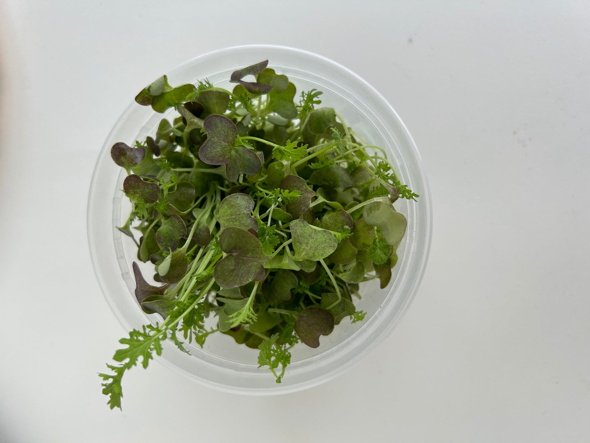 The attractive pink speckling and intricately serrated leaves of this variety will add a pop of color and intrigue to all of your dishes. These greens have a spicy mustard flavor, much like a classic deli mustard.