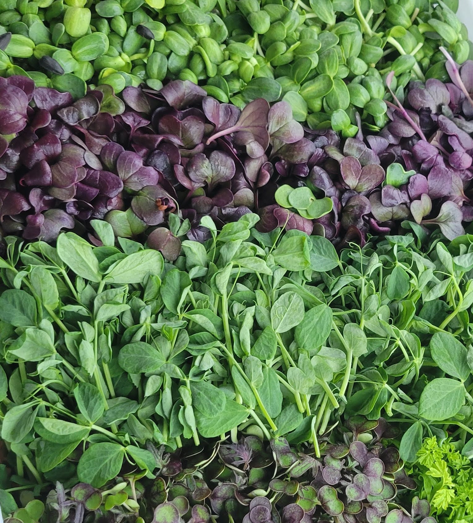 How to use: Add larger quantities sunflower, purple radish, and sweet pea to build out your entree, and garnish with a sprinkle of more delicate rotating varieties